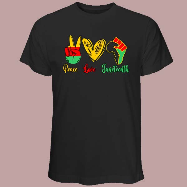 Peace Love Juneteenth T-shirt This design is available in Black,Red,Royal Blue,Purple,Kelly Green shirt colors. Select below. |