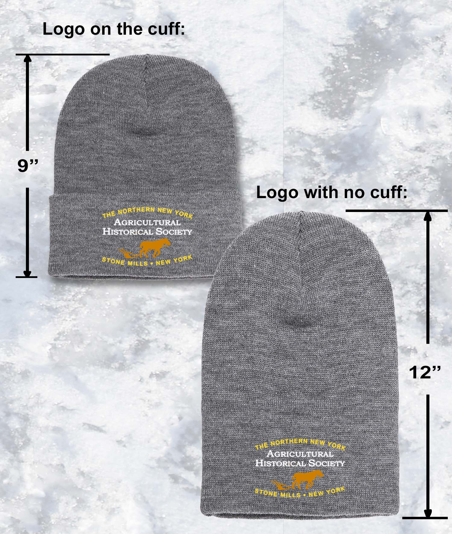 Knit Cap Features: 100% turbo spun acrylic knit; hypoallergenic; tight knit; hand washable; approximately 12" in length. 9" cuffed. |